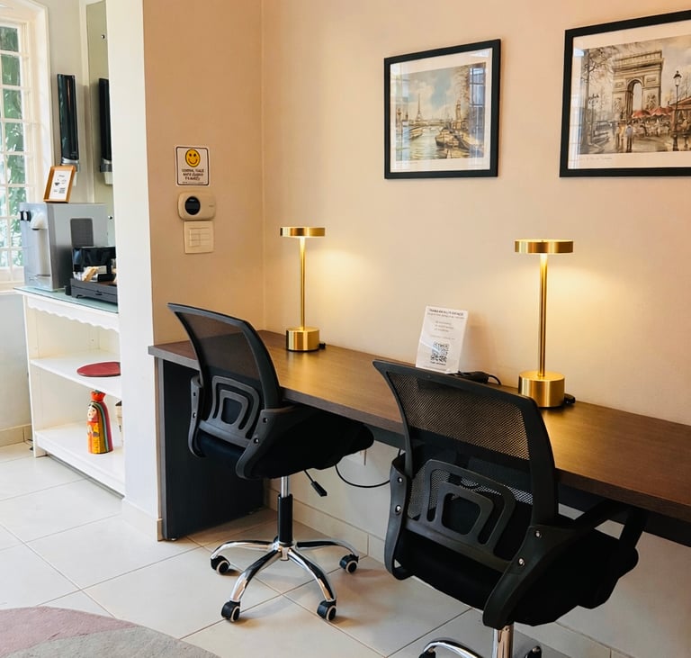Estações de trabalho práticas, café à vontade e um ambiente aconchegante para o seu trabalho