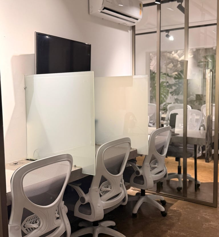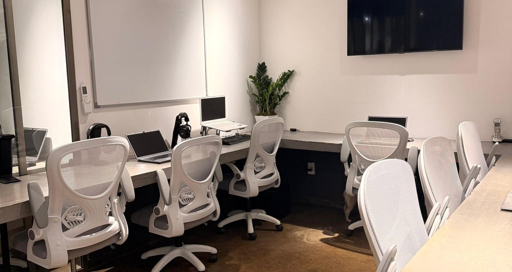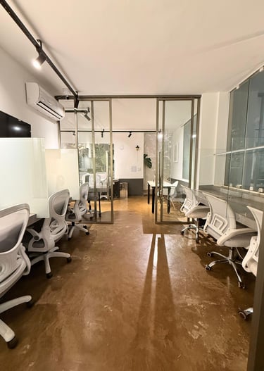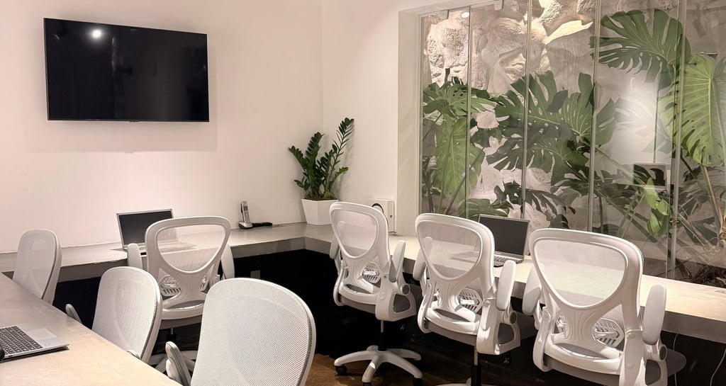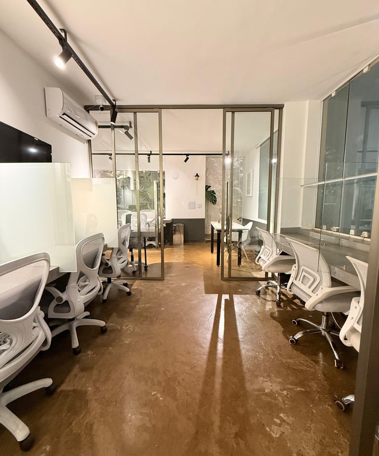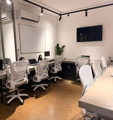 14 estações modernas, café à vontade e um ambiente moderno e aconchegante para o seu trabalho